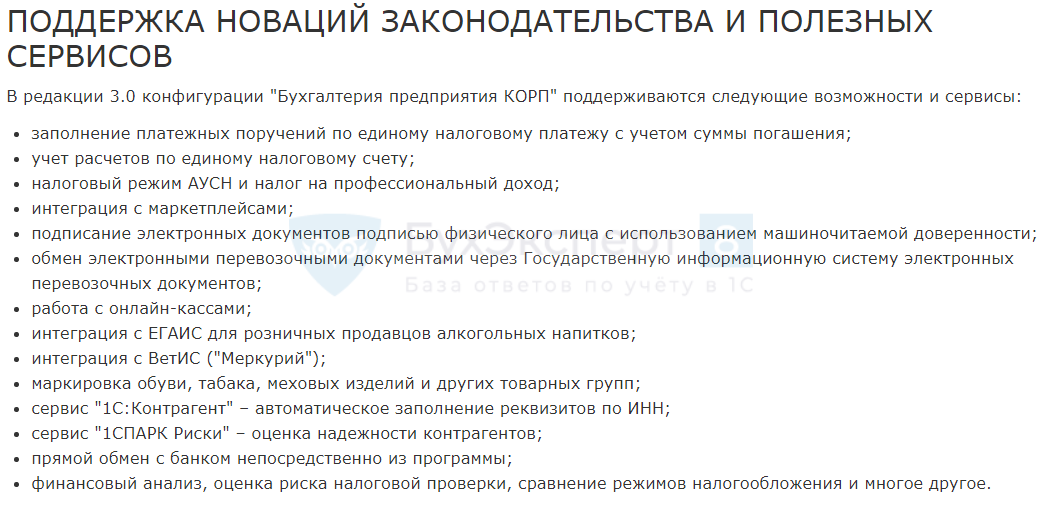 Основная задача, которую решали разработчики в КОРП ред. 3.0, — удобство использования программы и интеграция ее с другими сервисами. Полный список реализованных возможностей новой конфигурации опубликован на сайте разработчиков:
