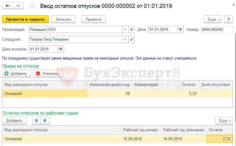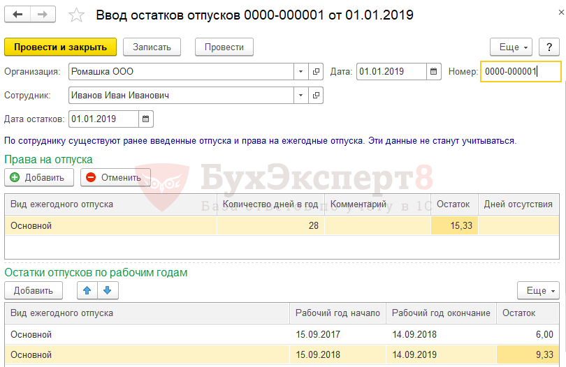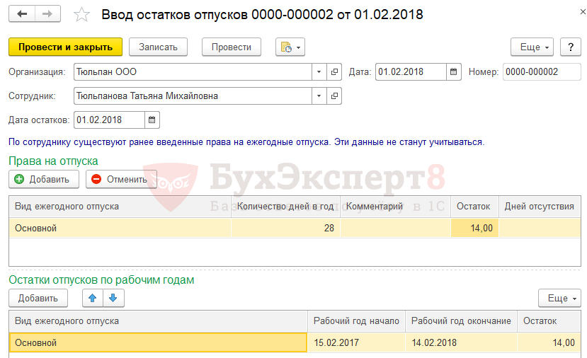 Как внести остатки отпусков в 1С 8.3 ЗУП
