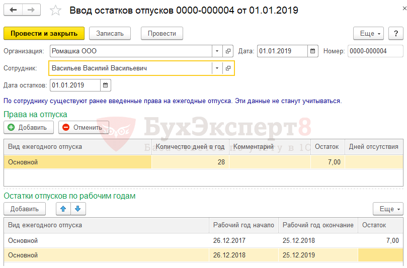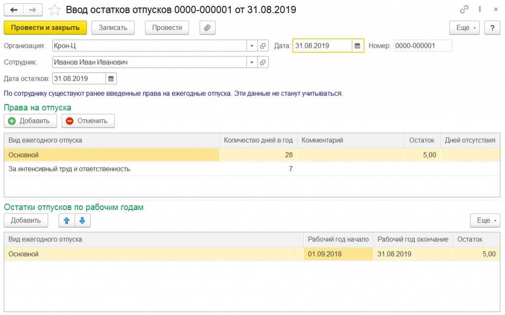 Правила ввода остатков отпусков в 1С ЗУП 3.1