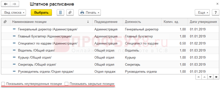 Снимем флажки Показывать неутвержденные позиции и Показывать закрытые позиции в нижней части формы: