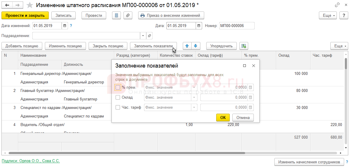 Аналогичным образом необходимо скорректировать ФОТ всем сотрудникам, занимающим эту позицию.
