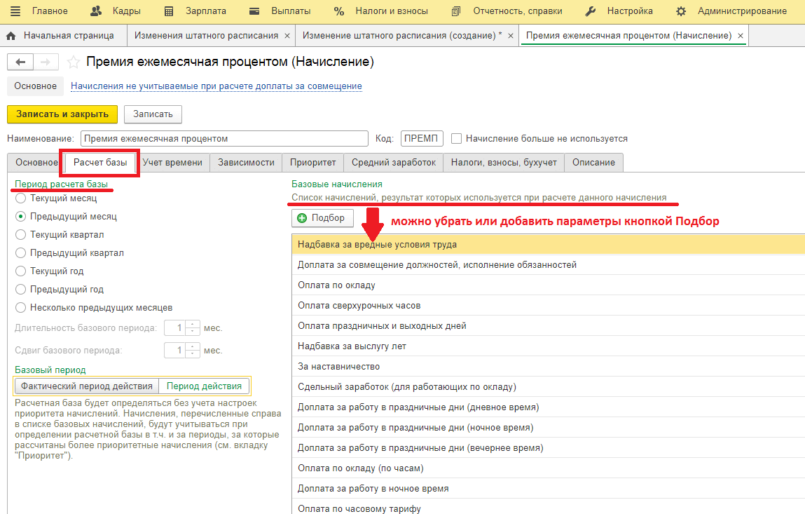 Как установить надбавку за вредность и переменные премии в 1С ЗУП?