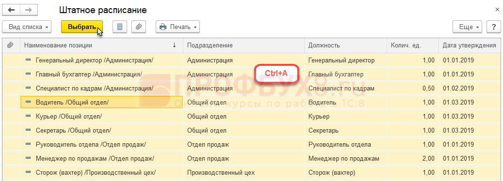 Выделим все строки клавишами Ctrl+A и нажмем Выбрать: