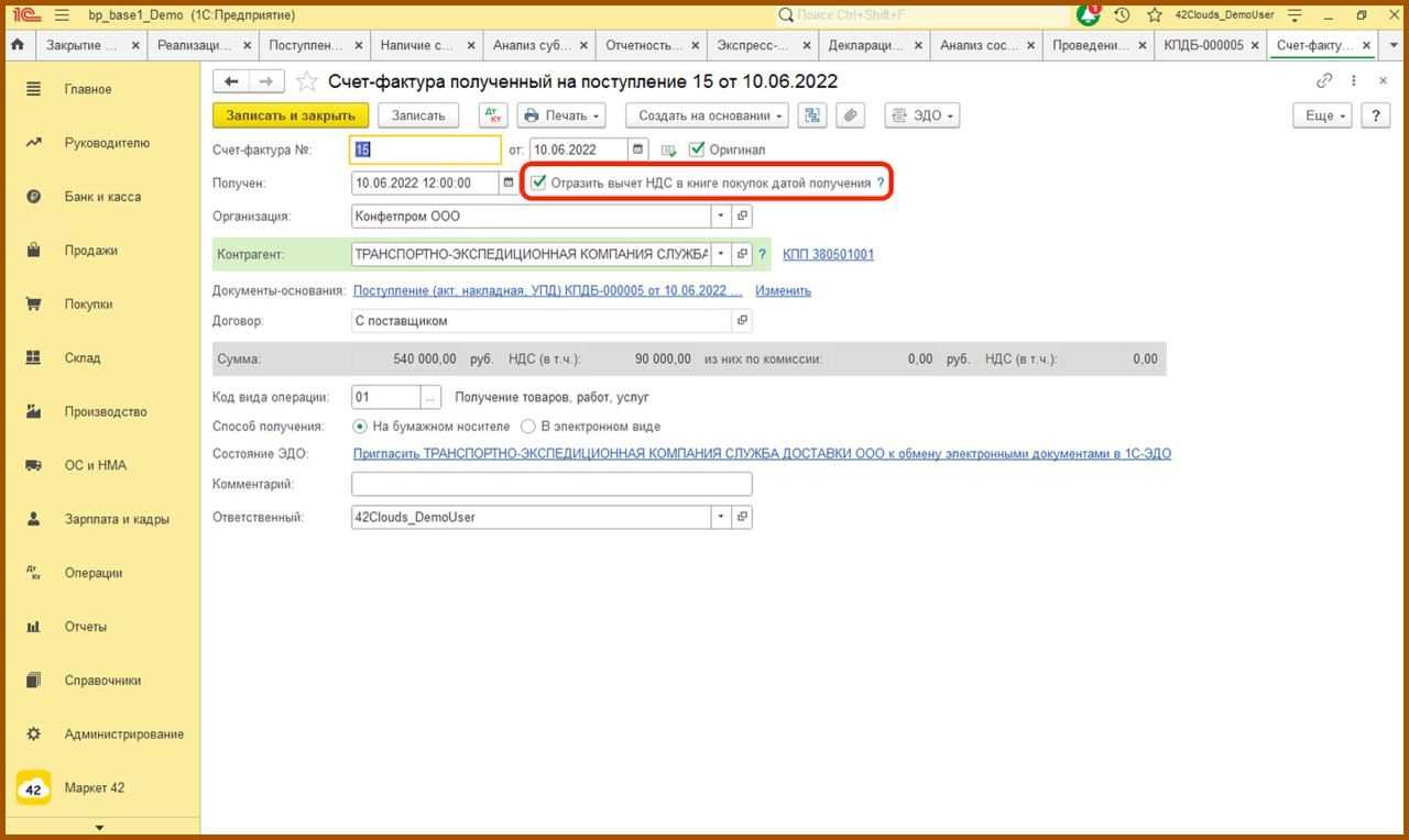 Поддерживается возможность ведения регламентированного учета, когда документация оперативного учета отражается в налоговом и бухгалтерском учете с необходимой их проверкой сотрудниками-бухгалтерами.