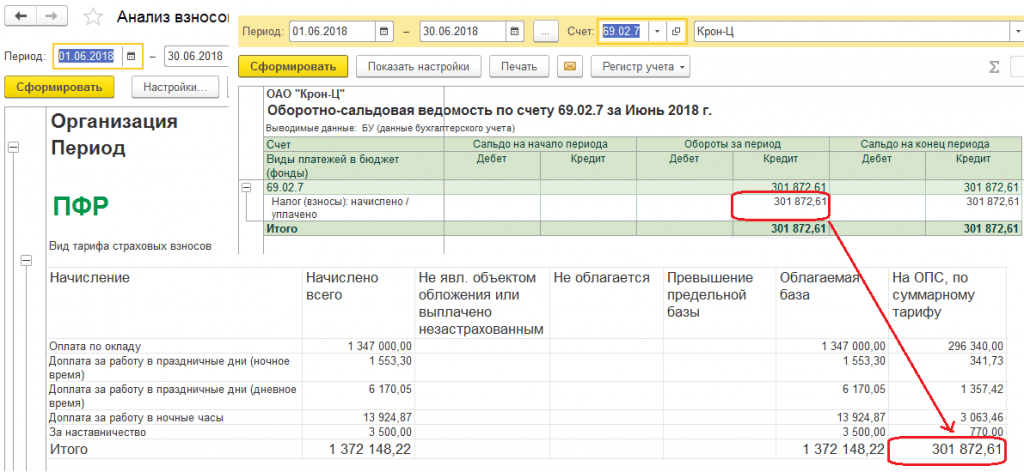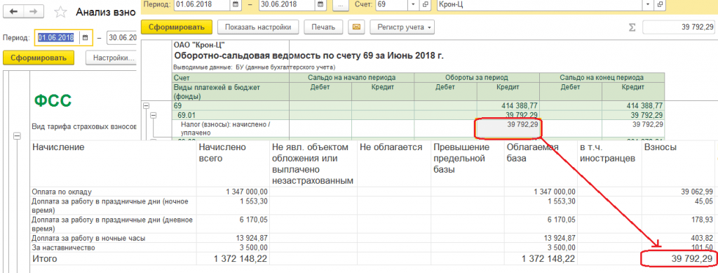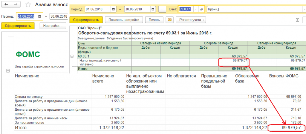 Проверку перенесенных данных по страховым взносам можно осуществить с помощью отчета «Анализ взносов в фонды» и оборотно-сальдовой ведомости по счету 69 и субсчетам в 1С:Бухгалтерия.