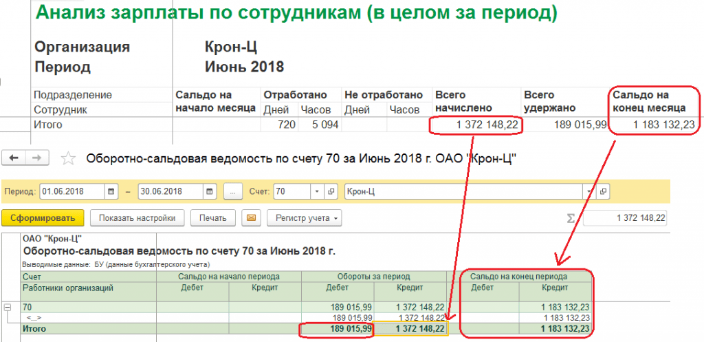 Проверка сальдо по 70 счету в ЗУП с 1С:Бухгалтерией