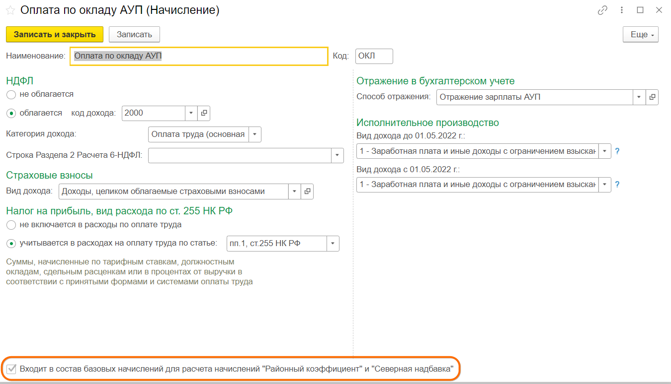 10. Способ отражения подставился в наше начисление. Нажмите «Записать и закрыть».