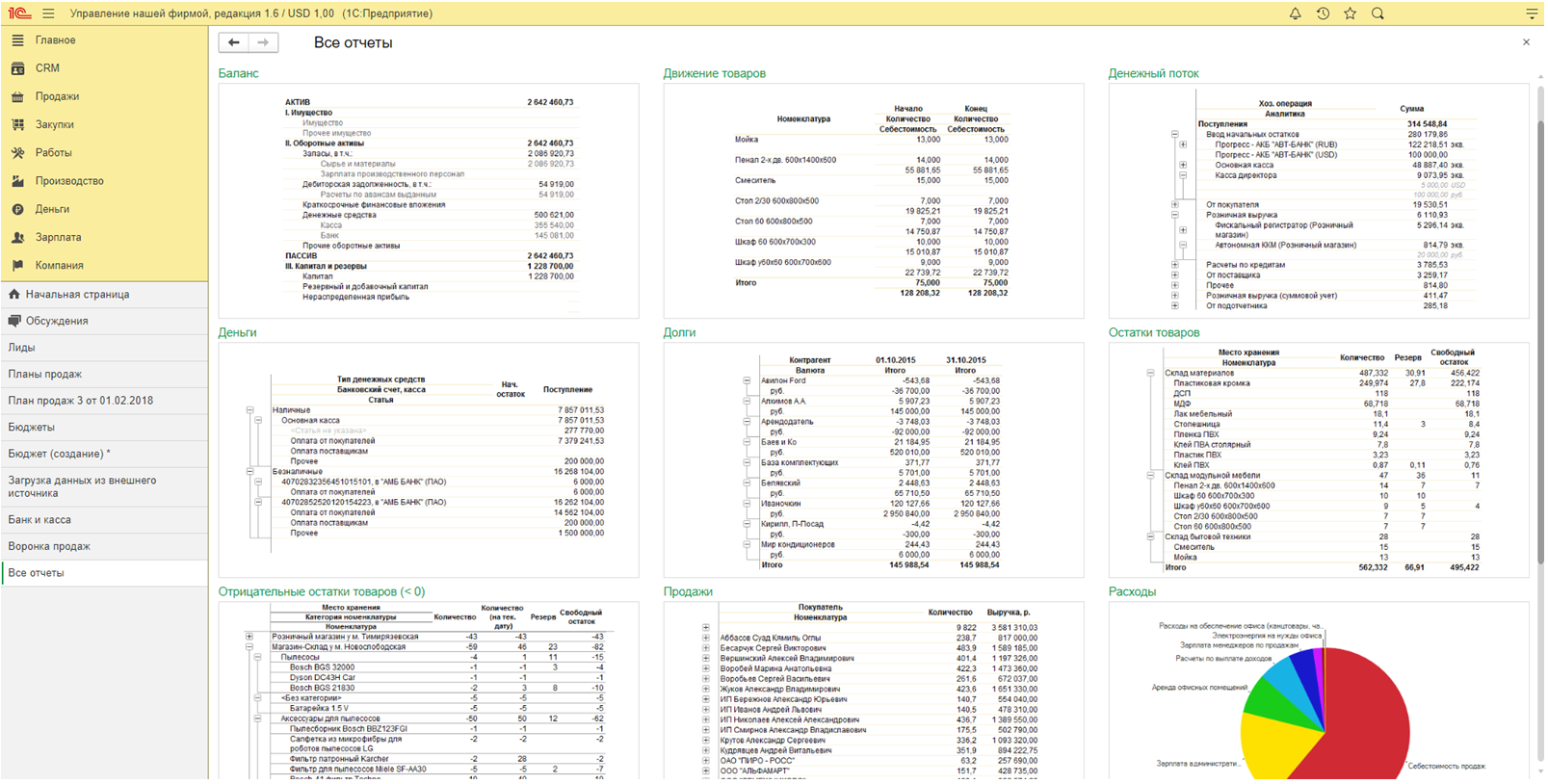 Единая информационная база данных предприятия в 1С: Управление нашей фирмой (1С: УНФ).