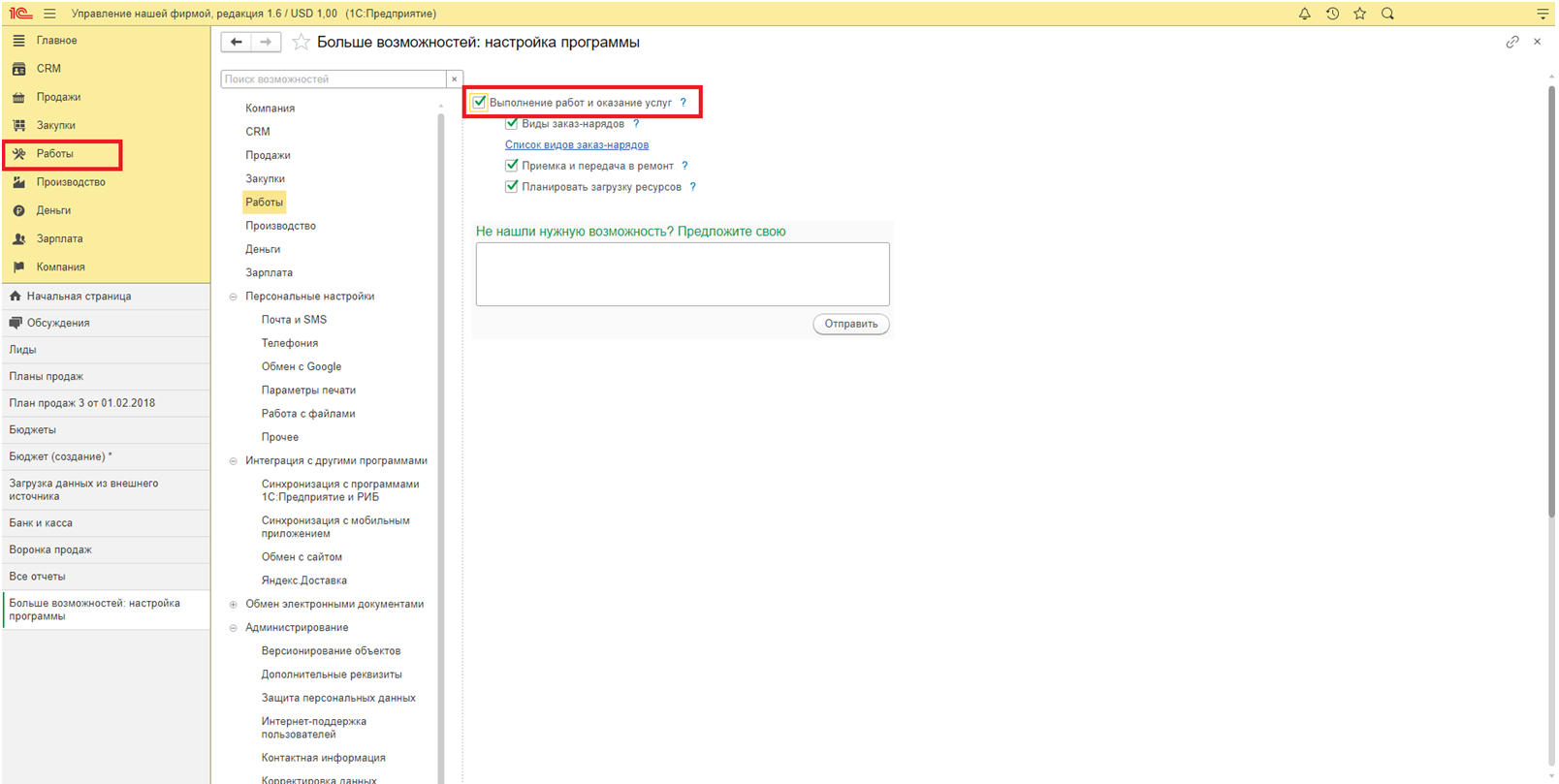 В версии 1.6.16 УНФ мы подготовили для вас множество интересных и полезных проектов! Полная функциональность решения 1С:УНФ теперь доступна на мобильных устройствах; Ассистент управления нашей фирмой – Даша; Новая скидочная программа – бонусы; Новый планировщик ресурсов для планирования работ, производства и записи к специалисту; Поэтапная сборка изделий и автоматизированное рабочее место «Выполнение этапов»