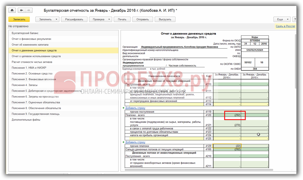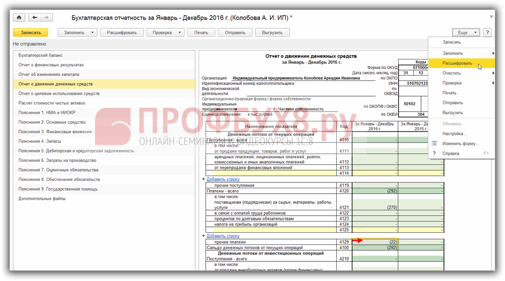 Сформируем Отчет о движении денежных средств в 1С 8.3: