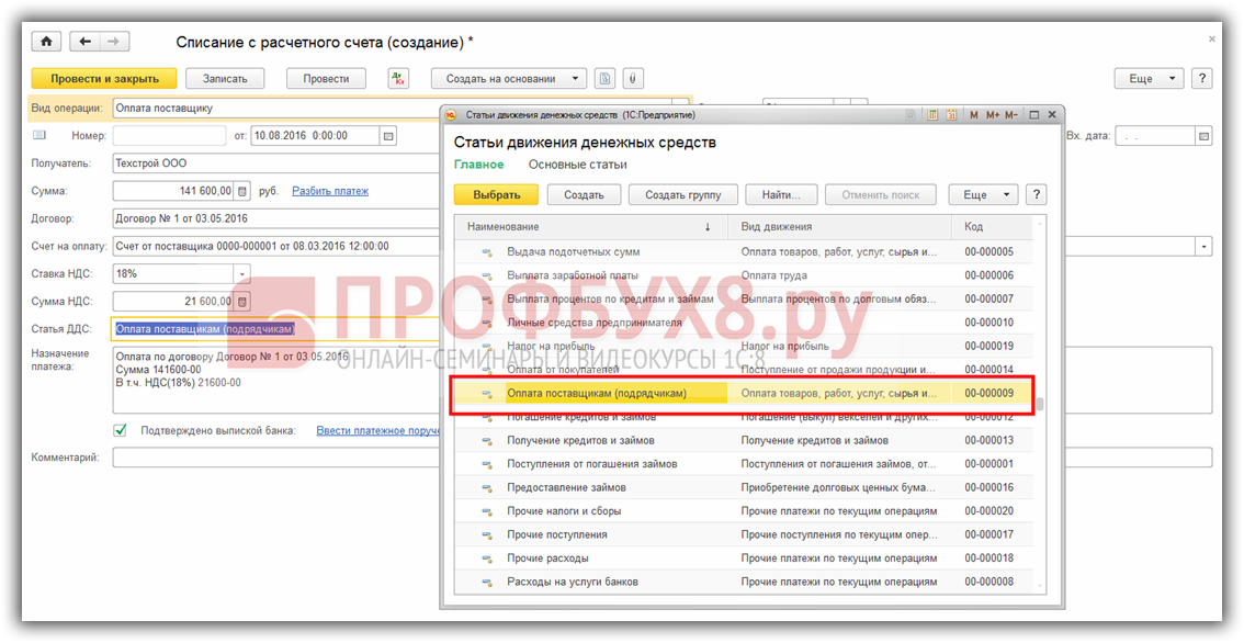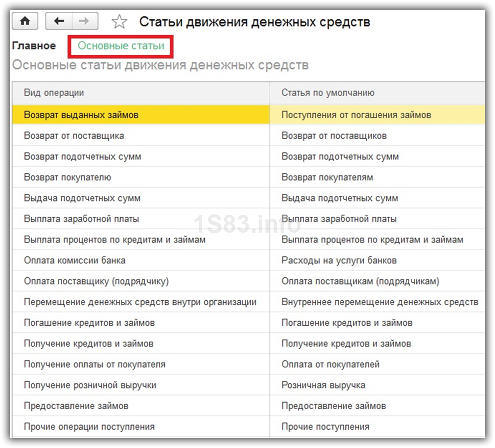 Как отражаются статьи движения денежных средств в 1С 8.3 на примере