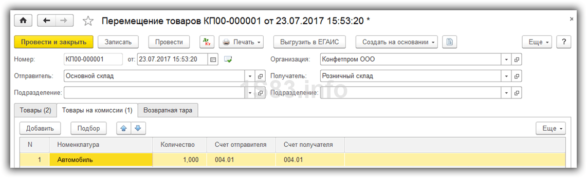 В самых простых и самых частых случаях при перемещении товаров счет учета не изменяется. В бухгалтерском учете изменяются лишь субконто, отражающие место нахождения – склад. В данной статье мы рассмотрим, как осуществить перемещение товаров между складами, на розничный склад, а так же работу с комиссионными товарами.