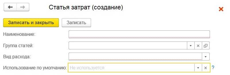 Пользователям предоставляется возможность самостоятельно добавлять статьи затрат в справочник в зависимости от специфики и потребностей организации. Ввод схожих наименований не требуется, поскольку из-за этого придется столкнуться с некорректной аналитикой в учете, а справочник будет попросту «раздут».