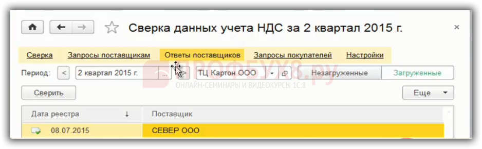 Шаг 5. Сверка с реестром счетов-фактур поставщика в 1С 8.3