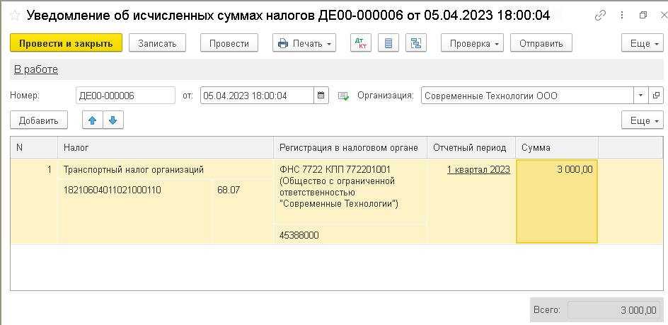 Документ не формирует проводки и движения по регистрам, используется только для отправки в ИФНС.