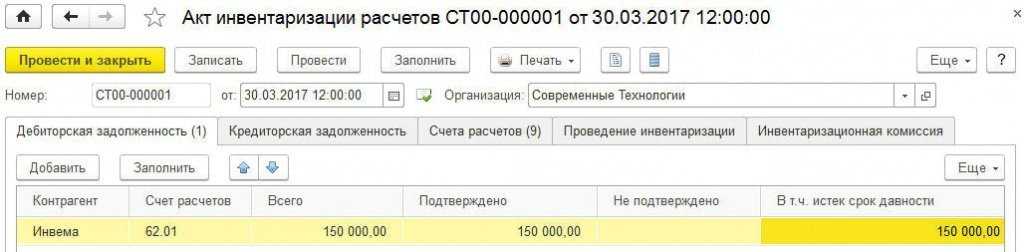 Рис. 2. Акт инвентаризации расчетов