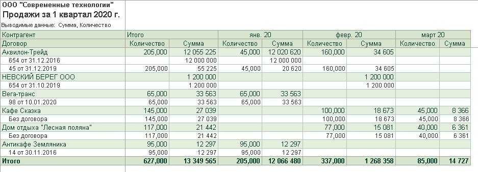 На рисунке 2 представлен отчет о продажах по контрагентам с детализацией по договорам.