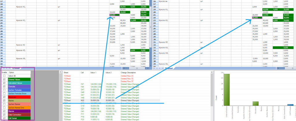 - при сверке объемных документов, даже с использованием формул, легко не заметить нужную ячейку и допустить ошибки по невнимательности.