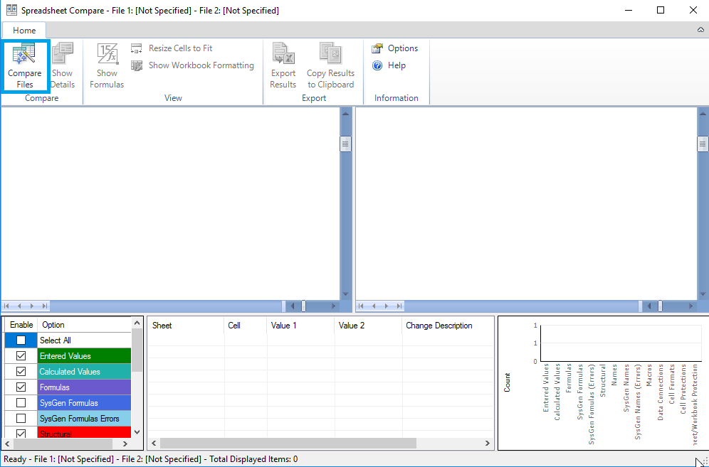 В маленьких файлах вы можете суммировать значения ячеек в колонках и тем самым выходить на строки с различиями.