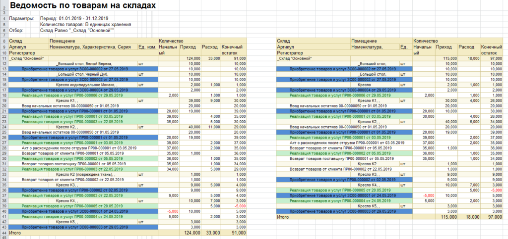 - по номенклатурным группам (то есть по однородным группам, по которым ведется укрупненный учет).