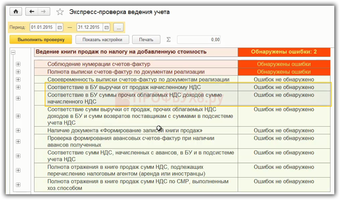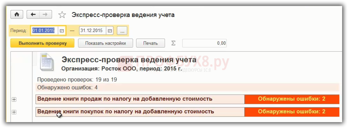 Экспресс проверка выявляет не все ошибки по учету НДС. На курсе по работе в 1С:Бухгалтерия 8 ред. 3.0 мы рассказываем про тройную проверку НДС, разбираем соответствие книг покупок и продаж и оборотам по счетам и много другое.