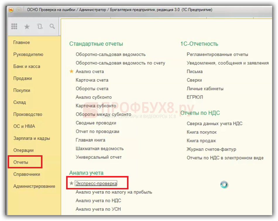 Ошибки по расчету НДС в 1С 8.3 поможет выявить Меню Отчеты – Экспресс-проверка ведения учета: