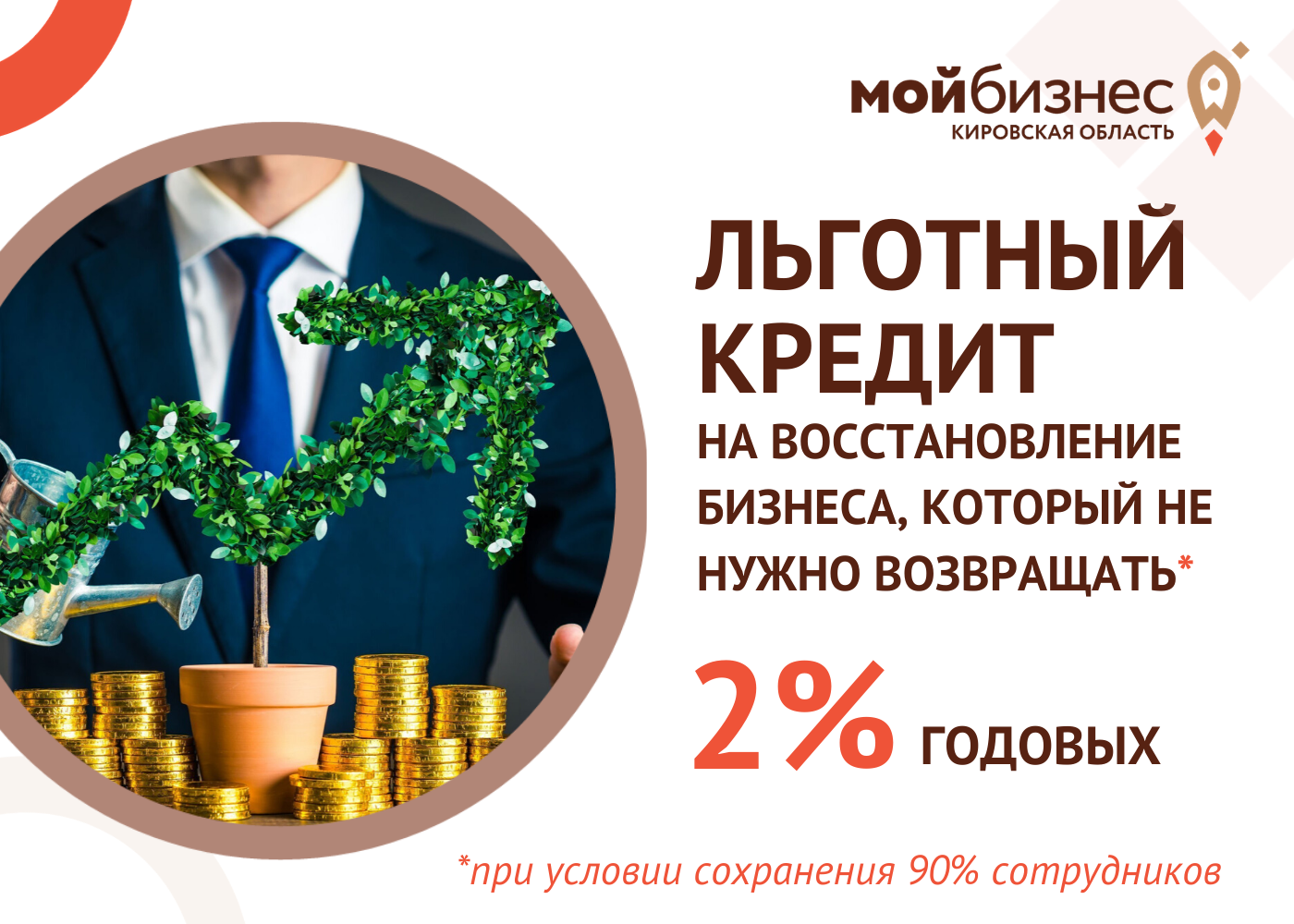 Льготный кредит на восстановление бизнеса по ставке 2% годовых не придется возвращать при условии сохранения 90% сотрудников
