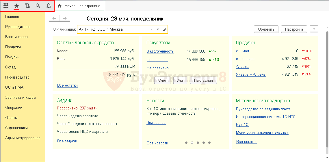 В итоге рабочий интерфейс бухгалтера по ОС может выглядеть следующим образом: