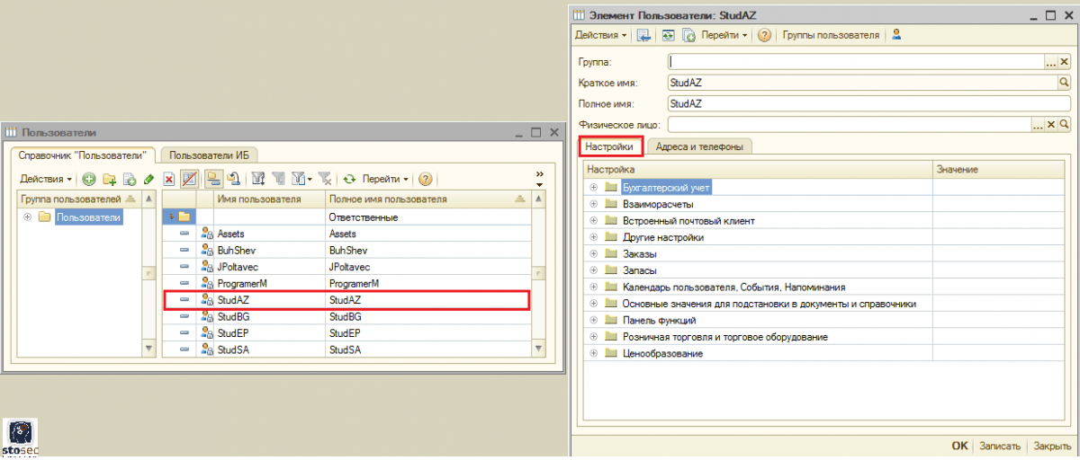 Настройка рабочего стола пользователя.