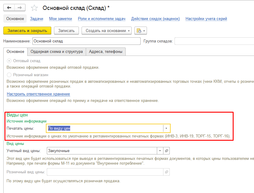 - Создаем новый оптовый склад с наименованием “Склад хранения”, подобно тому как показано на рис 1. . В настройке указываем следующие параметры