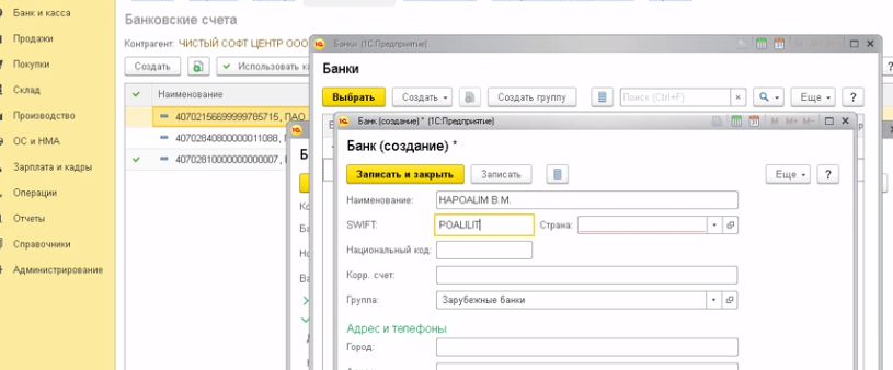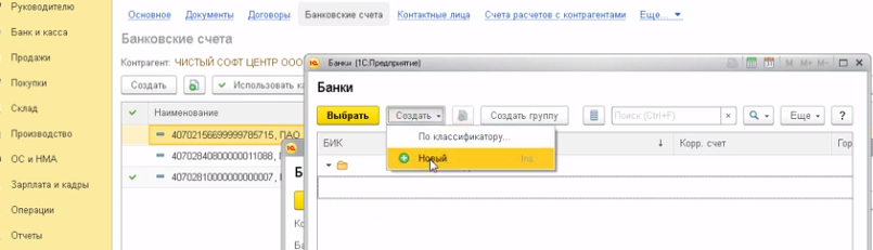 Создание банковского счета организации или контрагента в 1С:Бухгалтерии 8