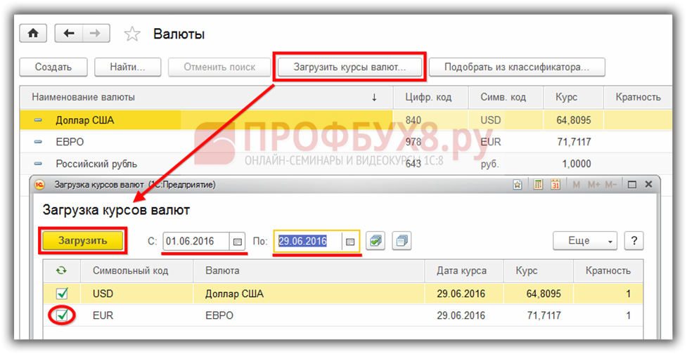 Подробнее как загрузить курсы валют в 1С 8.3 смотрите в онлайн-курсе: «Бухгалтерский и налоговый учет в 1С:Бухгалтерия 8 ред. 3 от А до Я»