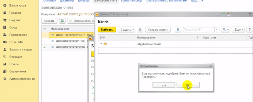 В общероссийском классификаторе банков, иностранных банков нет, поэтому отказываемся от предложения программы подобрать банк из классификатора