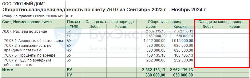 На конец сентября до ввода изменений в договор расчеты по аренде можно посмотреть в оборотно-сальдовой ведомости по сч. 76.07 «Расчеты по аренде».