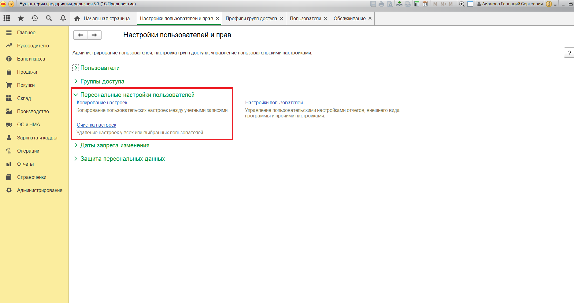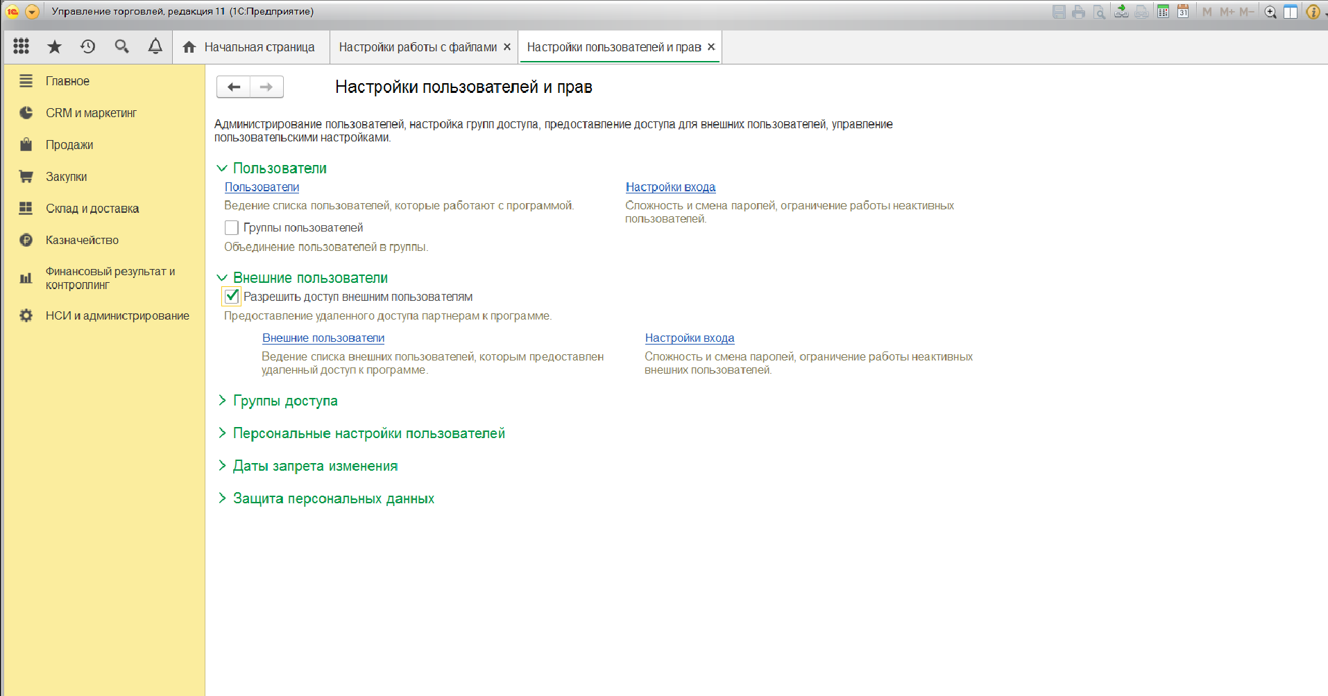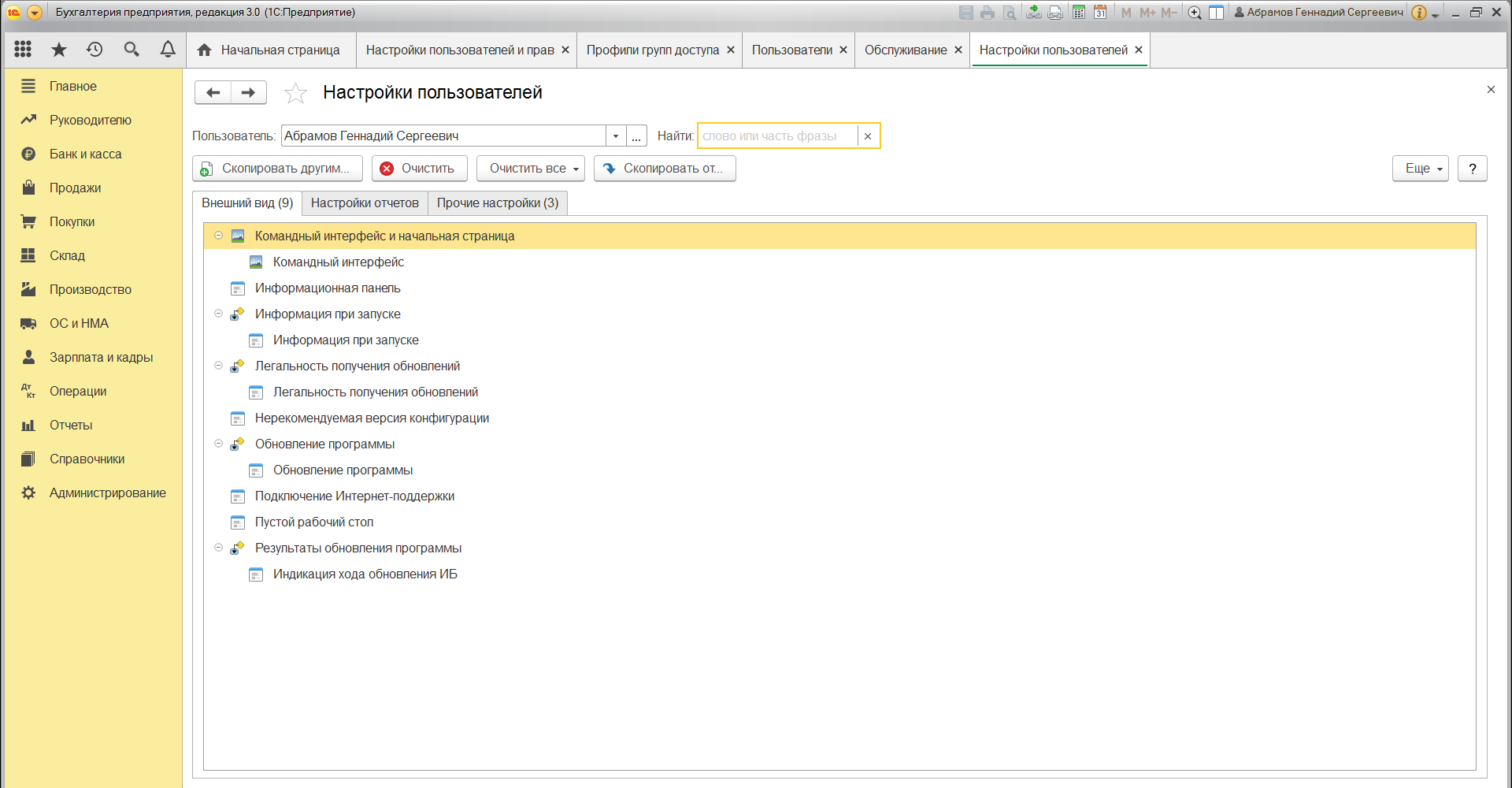 Итак, вы настроили все права доступа в 1С, какие требовалось. Что же еще предлагает система?