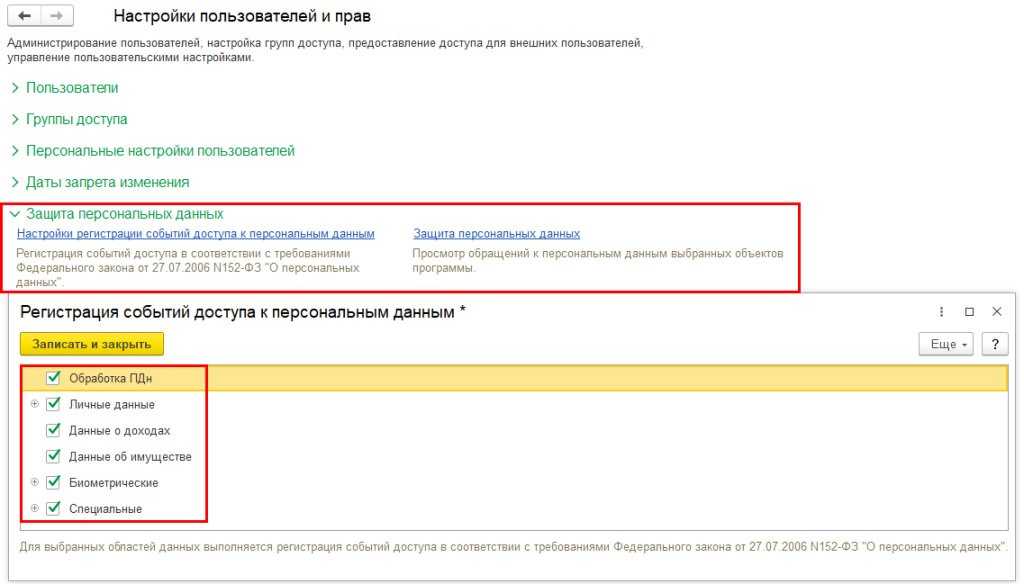 В программе «1С:Зарплата и управление персоналом 8» ред. 3 в соответствии с требованиями Федерального закона № 152-ФЗ реализована регистрация таких событий, как: