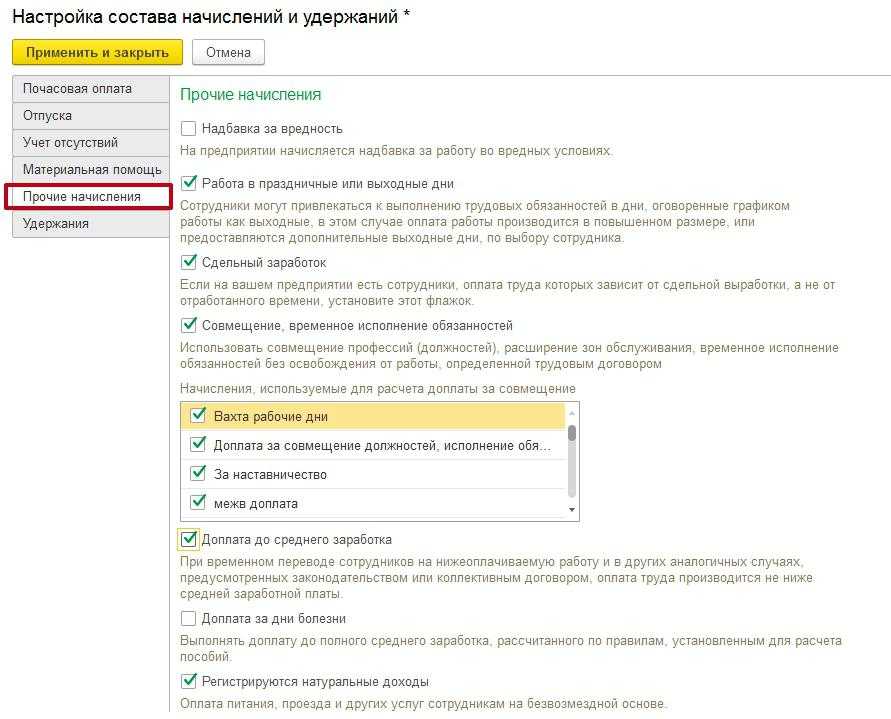 Другие начисления придется настраивать отдельно. Поскольку данная версия программы обладает расширенным функционалом, здесь есть возможность пользоваться опцией совмещения профессий. Среди прочих обновлений особенно полезными можно назвать возможность регистрации натуральных доходов.