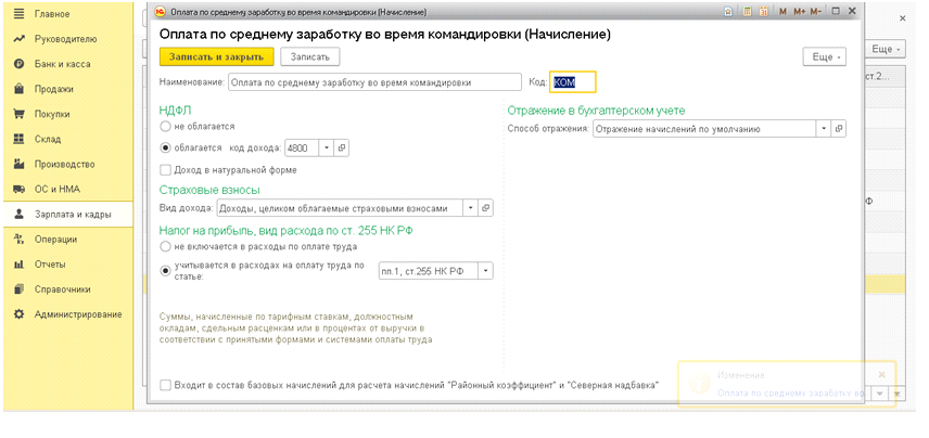 Сохранение среднего заработка во время нахождения сотрудника командировке в программе 1С