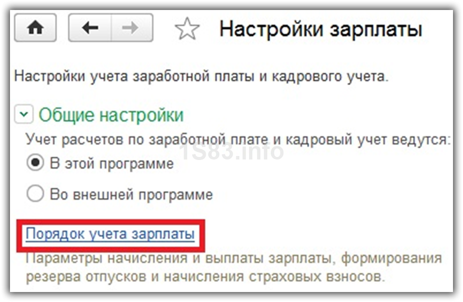 Теперь перейдем непосредственно к настройке учета наших взносов. В форме настройки зарплаты выберите пункт «Порядок учета зарплаты».