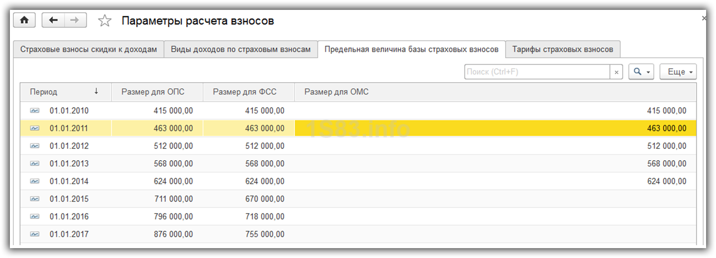 Тарифы страховых взносов в 1С