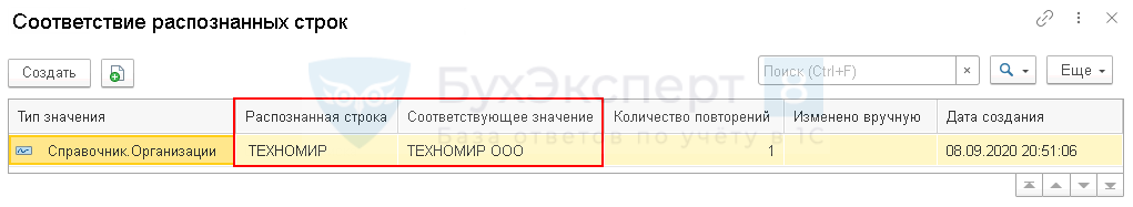 Функционал 1С: Распознавание первичных документов позволяет обрабатывать ситуации, когда записи в информационной базе пользователя незначительно отличаются от указанных в документе. В таких случаях сервис предоставляет возможность автоматического сопоставления данных и находит наиболее похожие варианты, которые могут соответствовать информации из документа.