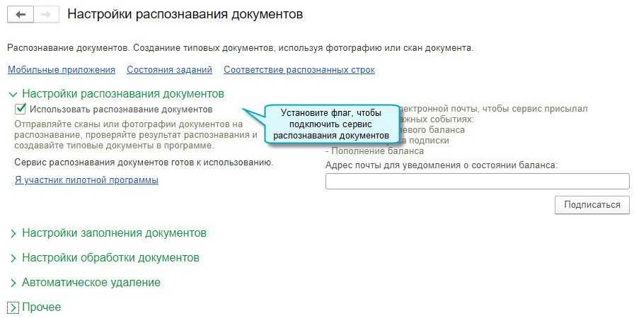 Если вы не участник пилотного проекта, используйте флажок Использовать распознавание документов, который выставлен по умолчанию.