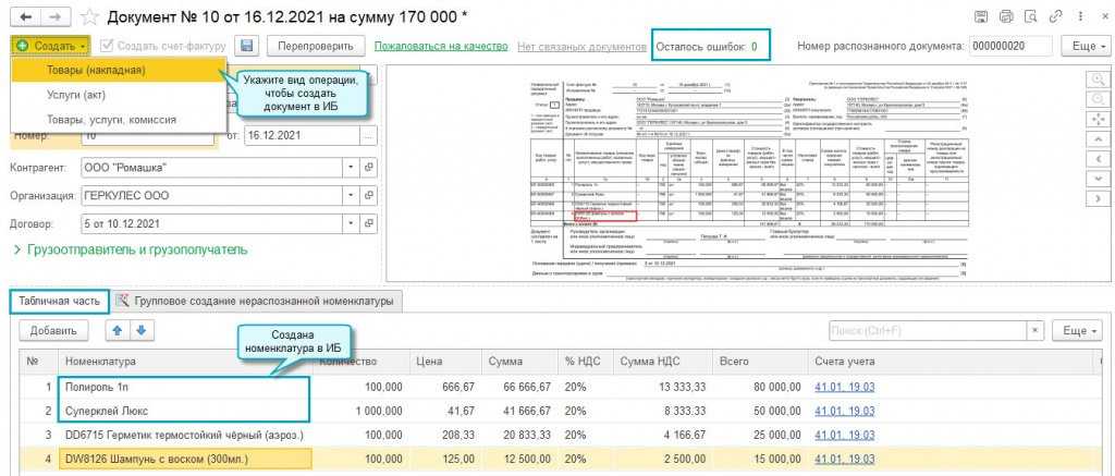 1С: Распознавание первичных документов обладает важной функцией – способностью распознавать и извлекать информацию о поставщиках, покупателях, товарах и услугах, а затем сопоставлять ее с соответствующими объектами в информационной базе пользователя. Это имеет ряд значительных преимуществ и позволяет существенно упростить и автоматизировать процесс работы с первичными документами