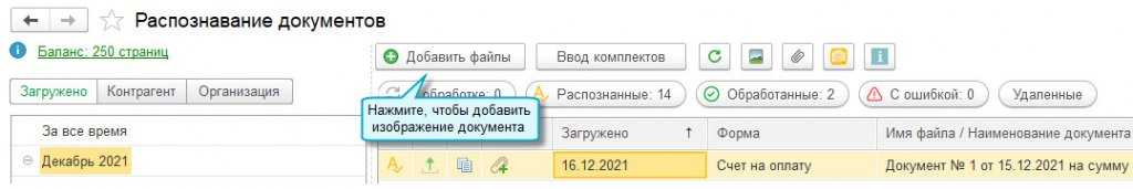 Шаг 4. После переноса файла в 1С выделите его и нажмите «Распознать».