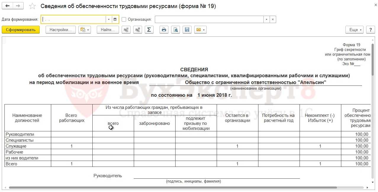 Форма 19 Сведения об обеспеченности трудовыми ресурсами (руководителями, специалистами, квалифицированными рабочими и служащими) на период мобилизации и на военное время. «Косметические» изменения: