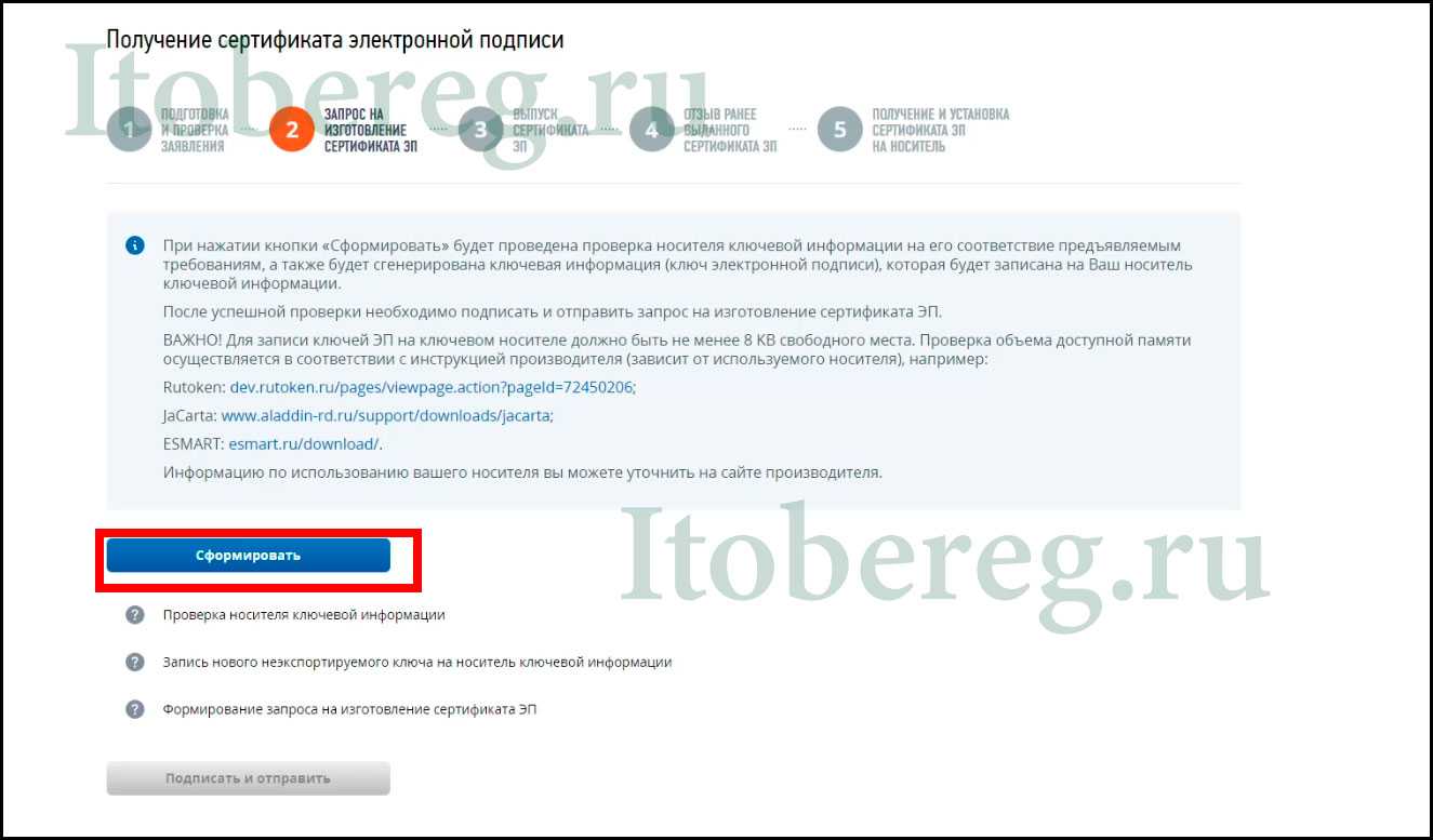 Нажать на появившуюся надпись «Изготовить сертификат» — произойдет формирование нового сертификата, который запишется на токен. Срок его действия — 15 месяцев. Старый сертификат автоматически будет отозван.