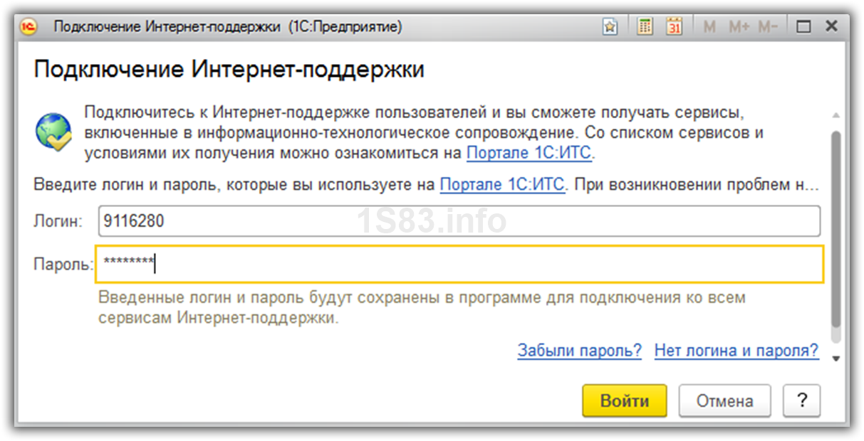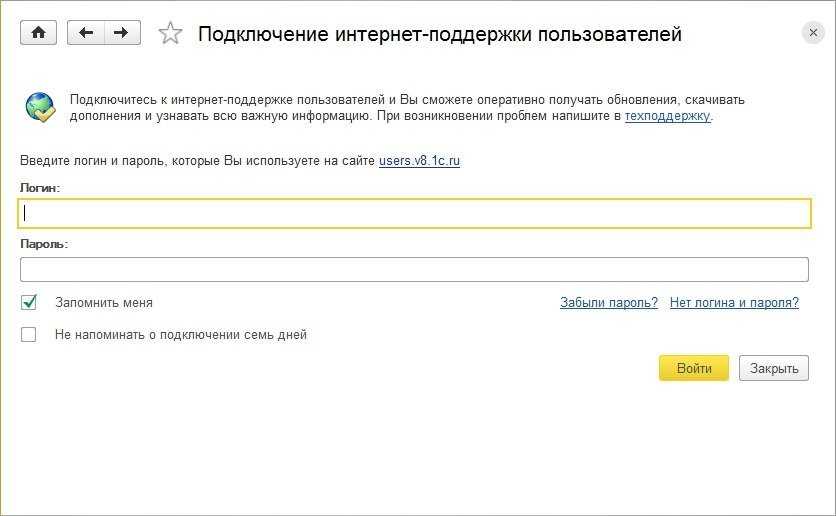 Нажмите «Да» и в появившемся окне введите логин и пароль от ИТС. Его вам должны были предоставить вместе с договором поставки на конфигурацию. В том случае, если по какой-либо причине у вас нет доступа к ИТС, обратитесь к нам.