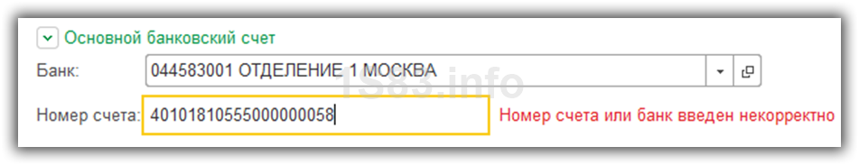 В 1С 8.3 существует встроенная проверка на корректность введенного вами номера счета. И в случае допущенной ошибки система сообщит вам об этом.
