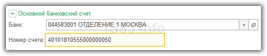 В карточке контрагента выберите банк, в котором он обслуживается, и укажите номер расчетного счета. Это и будет основной счет нашего контрагента для безналичной оплаты.