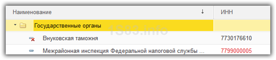 Те контрагенты, которых найти не удалось, отобразятся так, как показано на рисунке ниже.